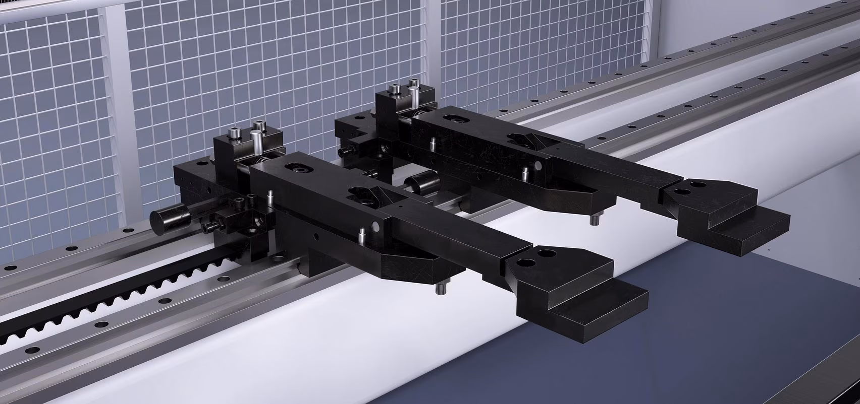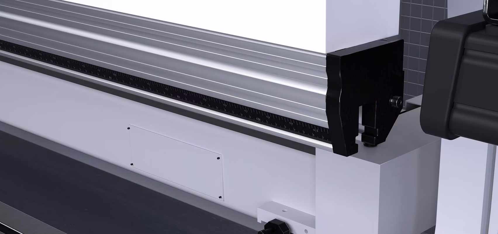 The 4-axis backgauge ensures correct sheet positioning with high reproducibility and allows easy bending of complex parts.