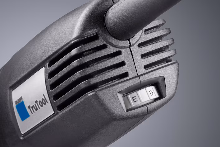 The TruTool S 450 is equipped with a robust cutting table specifically designed for thick sheet. This enables you to produce high-quality cuts in sheet thicknesses of up to 0.177 in. Above all, the machine is particularly well-suited for processing stainless steel up to 0.1 in. You can cut radii starting from 1.37 in without force. With a working speed of 19.5 feet per minute, you can progress quickly with your work. This is particularly advantageous when processing large sheets. The cutters can be adjusted quickly and easily to the sheet thickness using a rotary knob.