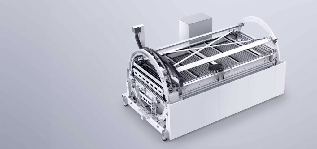 Two regripping stations are integrated in the Flex Cell: a fixed one for smaller parts and an adjustable one for larger parts. The safe collection of the bending parts is ensured by the independently generated vacuum of each suction cup. Short paths enable fast regripping thus reducing the cycle times.