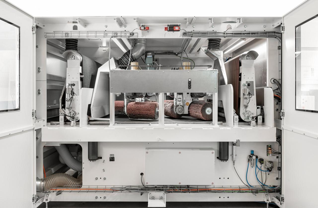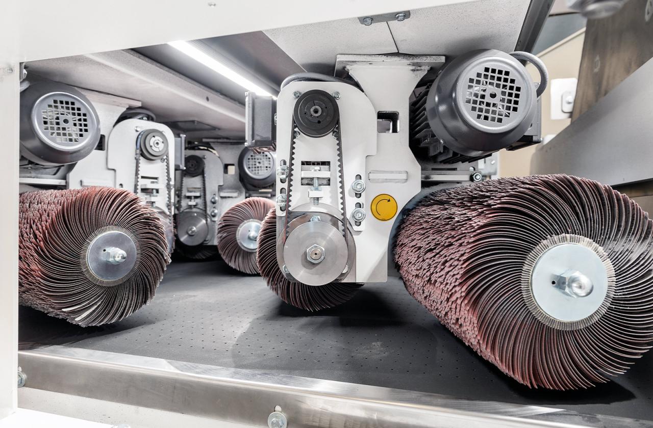 - Uniform edge rounding and multi-directional finish thanks to several brush heads