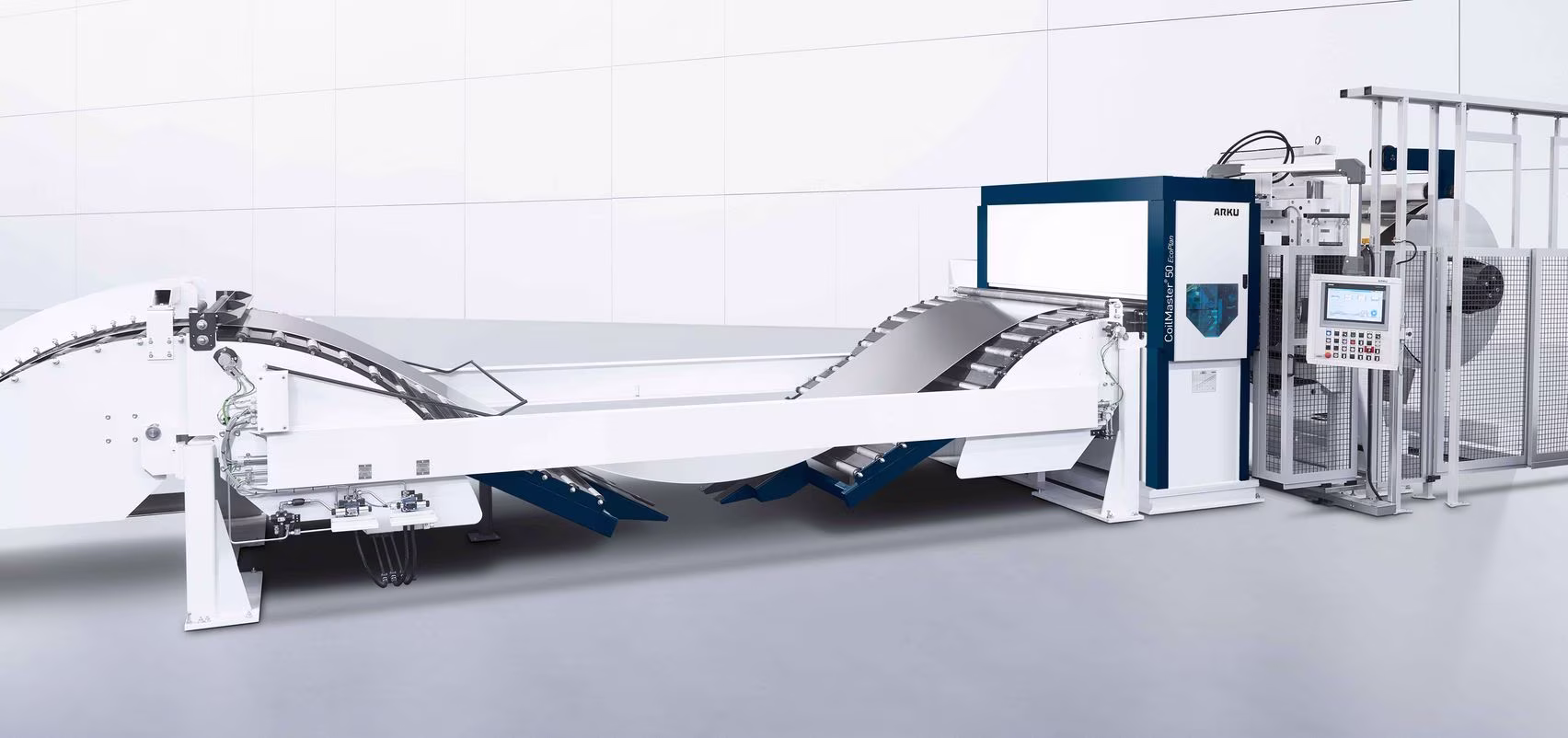 Equipped with an ARKU precision leveler, the ARKU belt system together with tried and tested TRUMPF quality combine to form a highly automated, turn-key entire system with many advantages for customers. An innovative control was developed in collaboration with SIEMENS – from coil unfolding, aligning and laser cutting to completely integrated, robot-based component removal. All steps are done by TruTops Boost, from the programming of the entire system to removal of the robot.