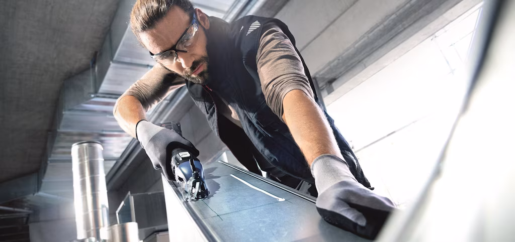 The 12V battery machine without chip clipper is particularly well-suited to cutting tasks without chip clipping during the cutting process. For example if you are cutting straight sheets to length or for curved cutting. We have different blades available to match the application. The 4.0 Ah / 12V LiHD rechargeable battery also ensures long runtimes.