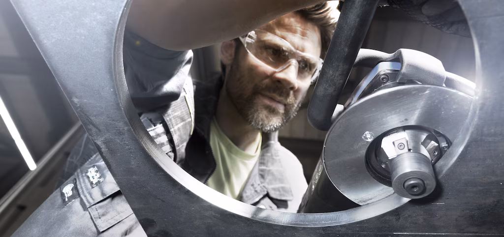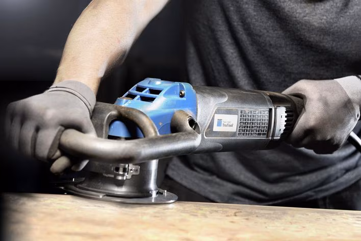The TruTool TKA 1500 is equipped with a powerful and robust 2600 W motor, which at the same time will impress you with its extremely low noise level and enable you to work without getting tired. The resulting stable machine guidance in combination with the ergonomic guide and motor handle also has a positive effect on the chamfer quality. You can create chamfer lengths of up to 15 mm and fix them in a continuously adjustable manner and without tools. The result: high-quality, repeatable edges right away – without rework. With the TruTool TKA 1500 you can create clean visible edges, break off sharp edges, add a radius or prepare a weld seam. Any oxidation or deformation of the material is avoided.