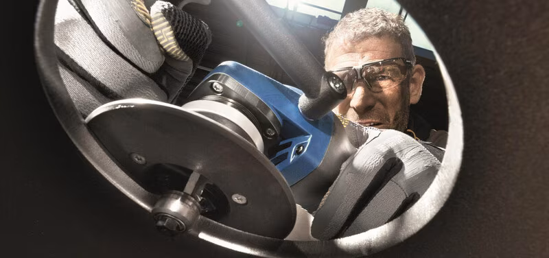 Equipped with a powerful 1700 watt drive, the TruTool TKA 700 provides outstanding power with high torques and stable and safe machine guidance. You can give components clean visible edges, break sharp edges, apply a radius of 2, 3 or 4 mm or prepare a weld seam. All of this is possible with little effort and in an array of angular positions, from 0° – 60°. Chamfer lengths can be set continuously and without needing any tools, with the utmost precision and speed. Chamfer lengths of up to 5 mm can be produced in mild steel very easily in one operation. A second work step is required for a chamfer length of 7 mm. The perfectly designed hand grip reduces vibrations, provides ergonomics and stable machine guidance.