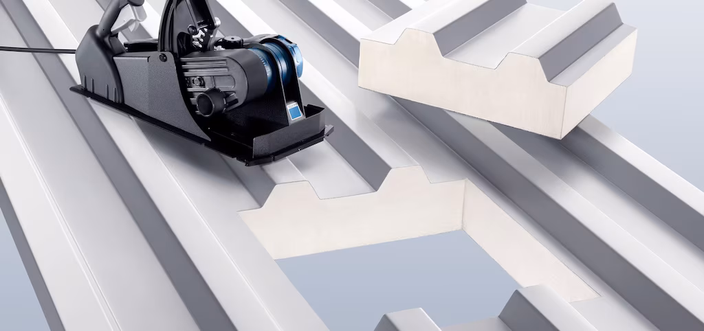 With the TruTool TPC 165 panel cutter, you can cut sandwich panels up to a thickness of 6.5 in. The blade insertion mechanism enables the production of accurate, perpendicular interior cutouts and notches. In one operation. The machine is ready for operation without presettings. Simply select the correct blade position and begin cutting. The TruTool TPC 165 can cut panels regardless of whether the surface is flat, trapezoidal, or corrugated.