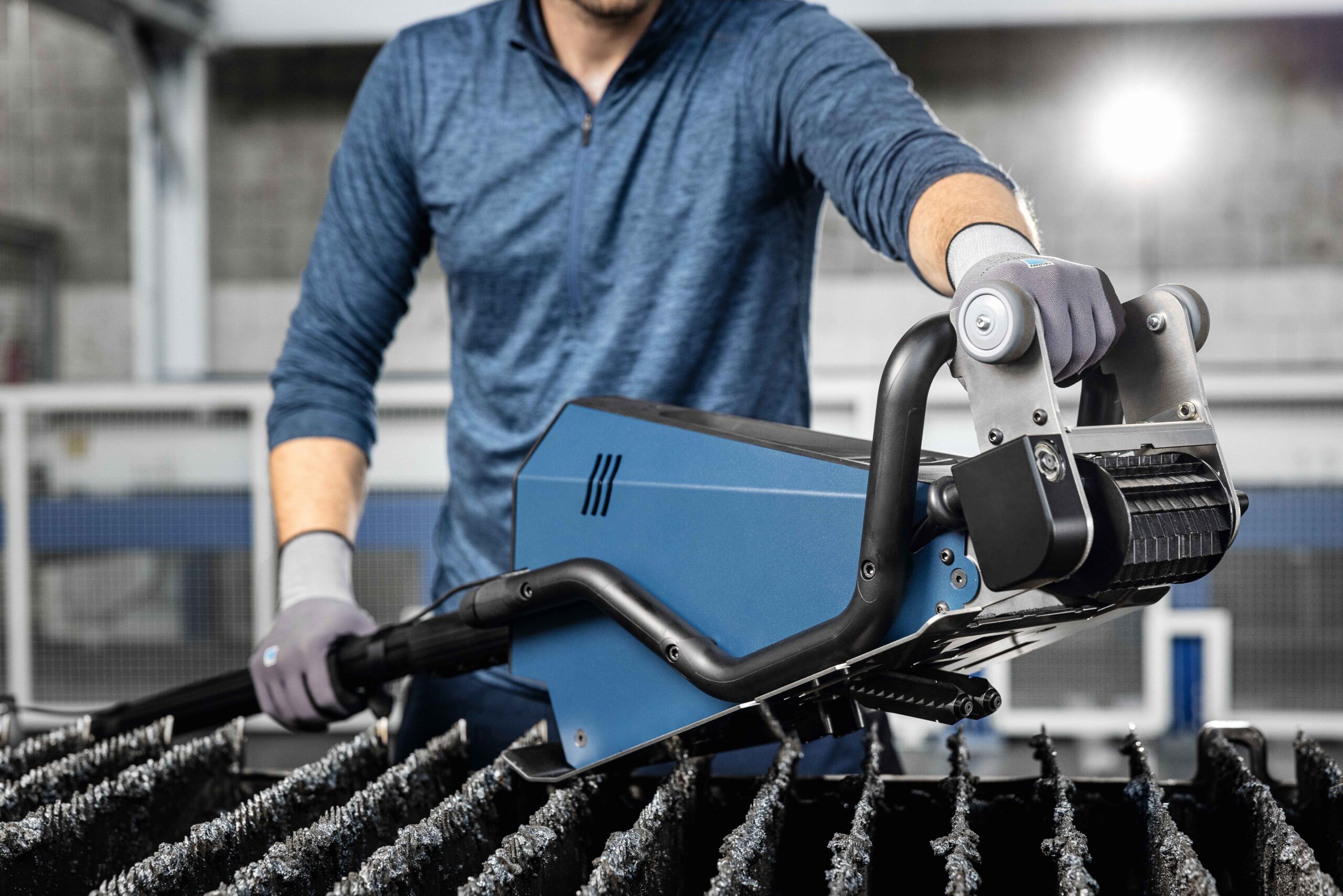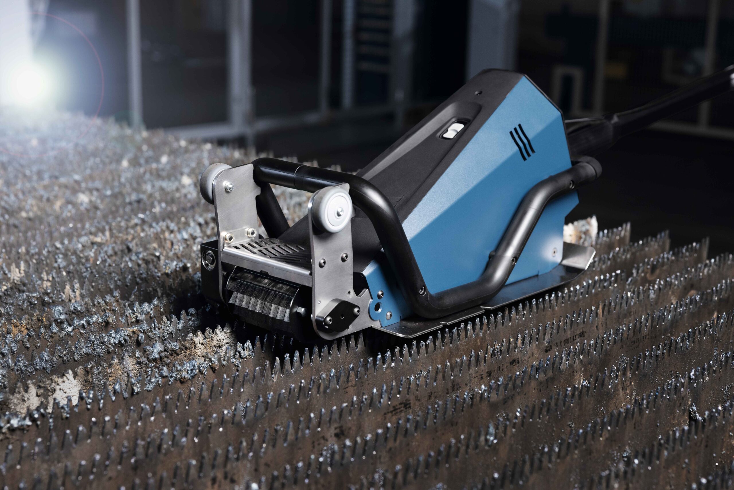 The slat is cleaned from bottom to top with a rotating movement. The roughing function breaks up the slag and performs the coarse cleaning. The finishing function is responsible for fine cleaning by scraping off the slag.